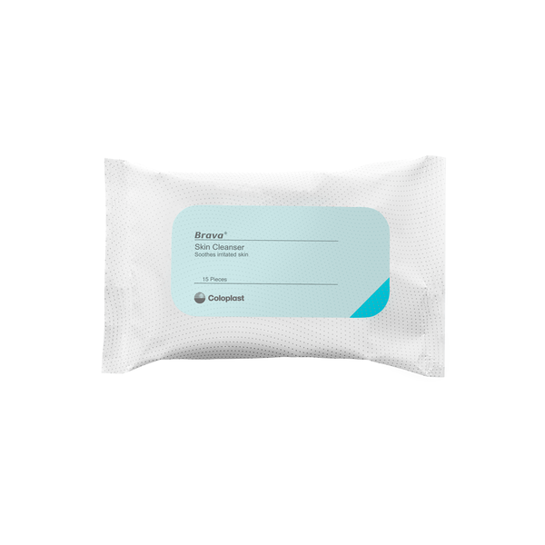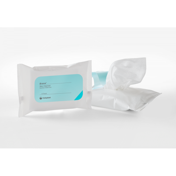 Brava® Zmywacz w chusteczkach Brava® Zmywacz w chusteczkach w prosty sposób oczyszcza skórę z resztek treści jelitowej lub moczu i przygotowuje skórę do nałożenia przylepca stomijnego. Można go używać zamiast wody do oczyszczania skóry.