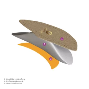 Sposób użycia: klin należy dopasować do stopy tak aby przypadał pod łukiem podłużnym i przykleić do buta.