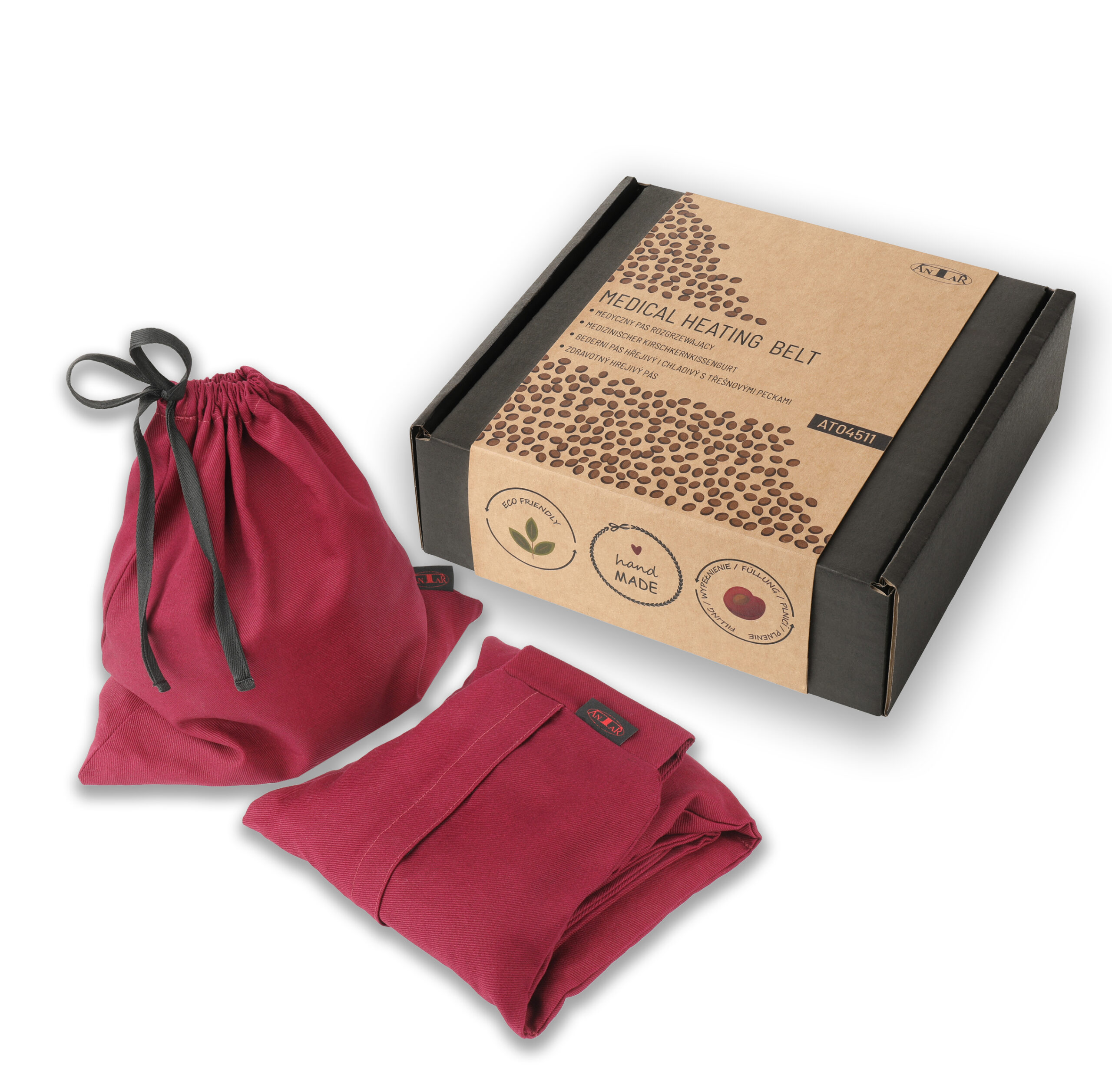 Medyczny Pas Rozgrzewający AT04511, wypełniony pestkami wiśni, to innowacyjne rozwiązanie wspomagające łagodzenie bólów i napięć mięśniowych, szczególnie w okolicy lędźwiowej kręgosłupa.