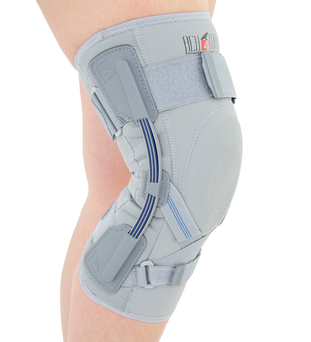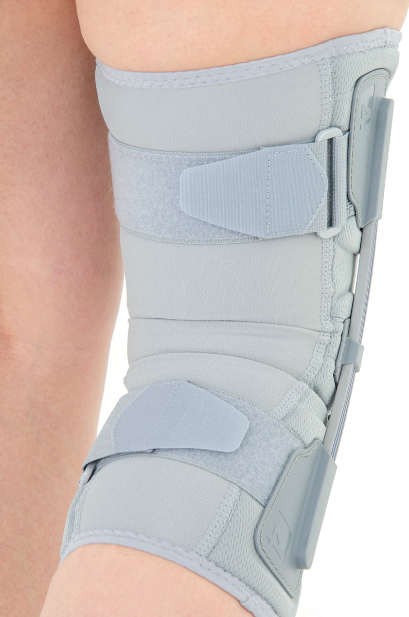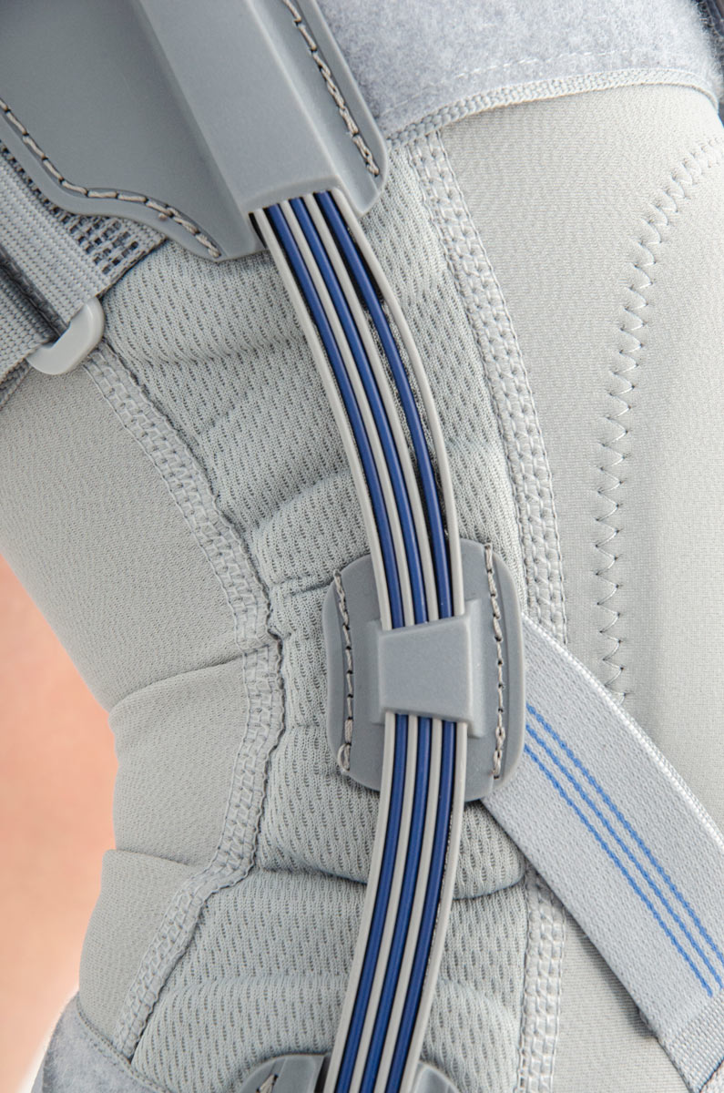 Wyrób został wyposażony w elastyczne szyny boczne, które stabilizują staw kolanowy w pozycji bocznej. Szyny te złożone są z kilku warstw sprężystych piór, które idealnie współdziałają z naturalnym ruchem kolana. Dodatkowo ortezę wyposażono w niezależne zespoły pasów wzmacniających wykonanych z taśm VELCRO oraz przednie zapięcia krzyżowe ACL.