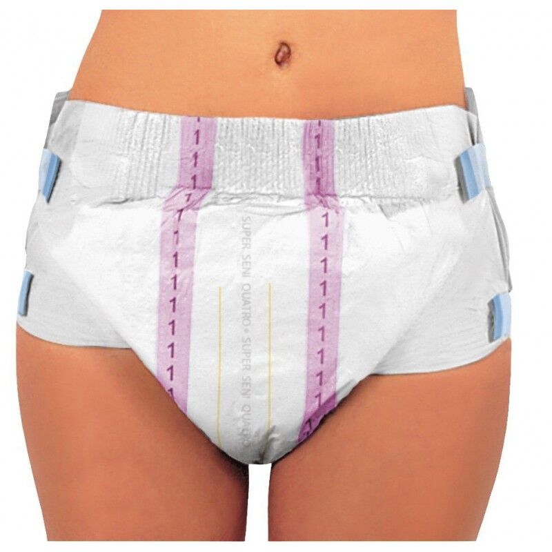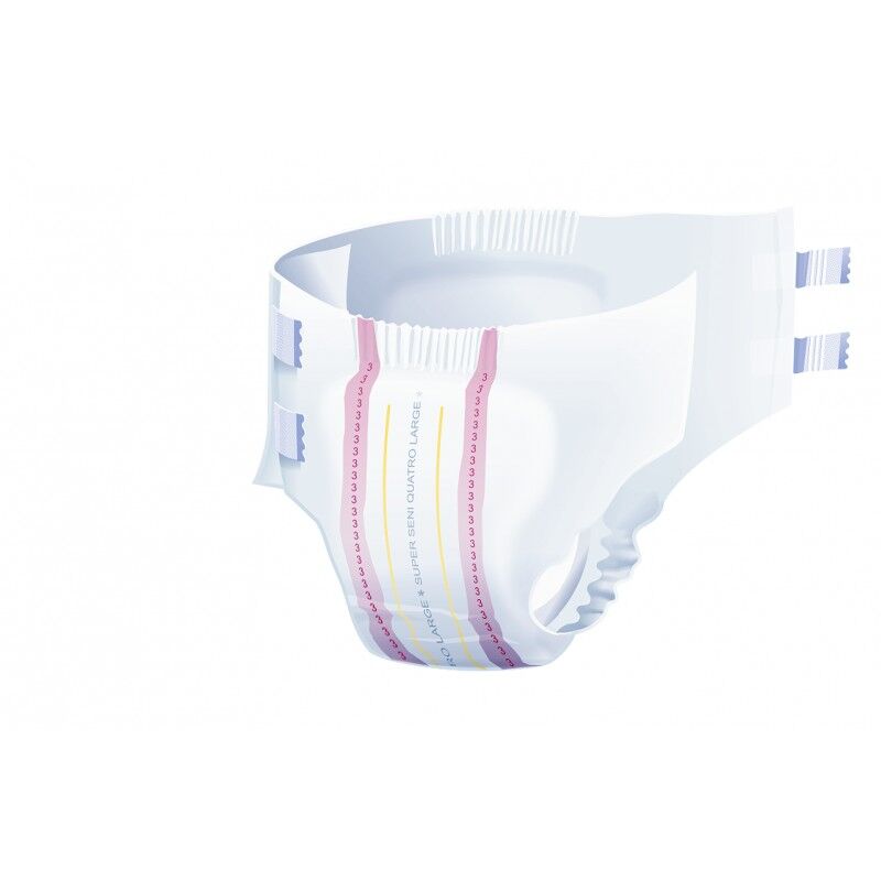 - Pieluchy Super Seni Quatro ułatwiają ciężką pracę opiekuna – każdy model pieluchomajtek Super Seni jest zaopatrzony w indykator wilgotności, który pozwala ocenić konieczność zmiany produktu bez potrzeby jego odpinania. Jeśli mimo wszystko zaistnieje konieczność odklejenia przylepców, np. celem poprawienia produktu na podopiecznym – nic nie szkodzi. Przylepce możesz zapiąć ponownie bez ryzyka rozerwania całej pieluchy.
