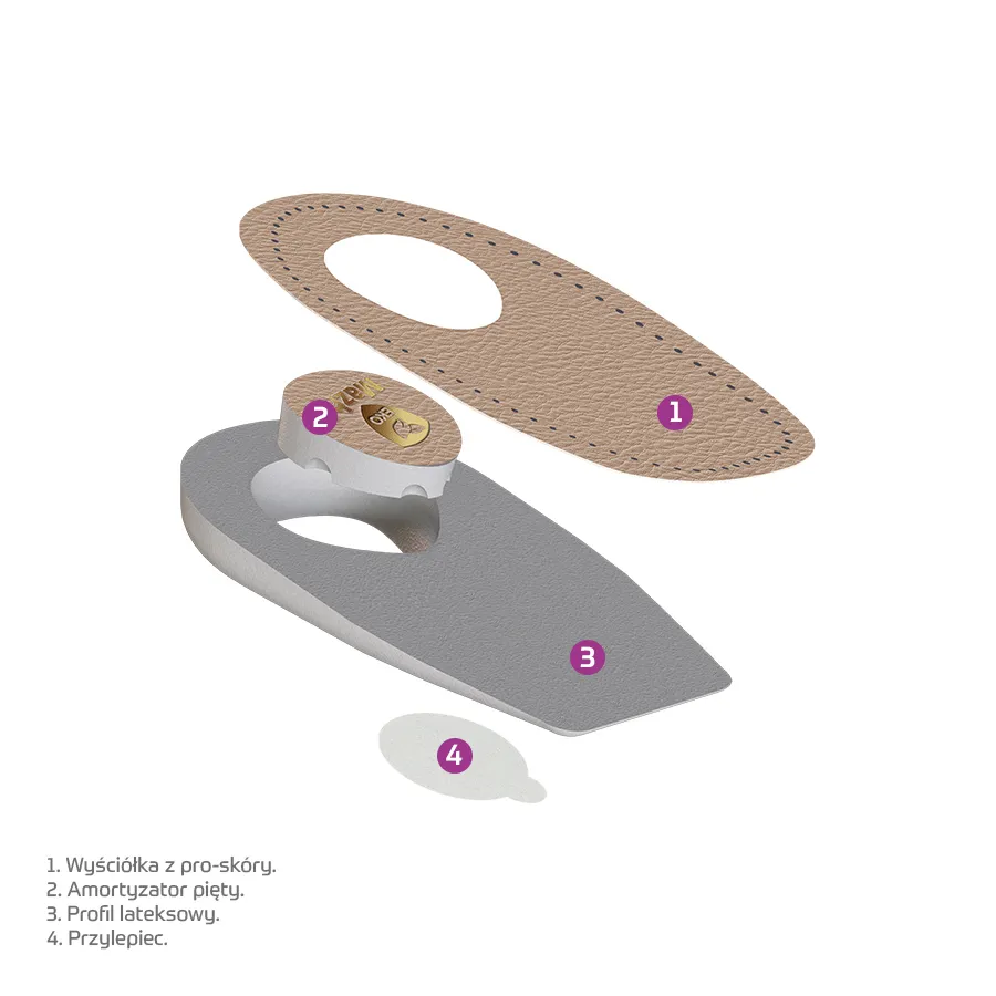 • elastyczny profil amortyzuje mikrowstrząsy, dodatkowo zmniejszając dyskomfort i ból towarzyszący ostrodze piętowej. W związku z tym będą idealne nawet dla osób o bardzo wrażliwych stopach