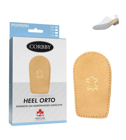 Dwuwarstwowe podpiętki wykonane z wysokogatunkowej skóry naturalnej i lateksowej pianki stosowane są w celu kompensacji nierówności kończyn dolnych.